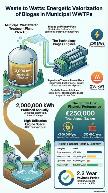 Biogas Valorisation in Municipal WWTP through Engine – Case Study