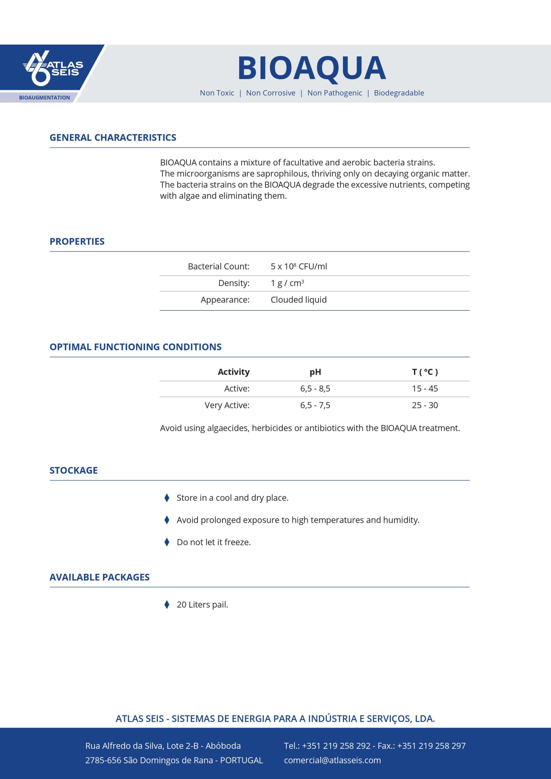 • Properties: BIOAQUA is a clouded liquid with a bacterial count of 5 x 10⁸ CFU/ml.