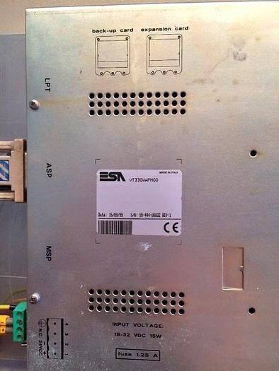 ESA VT330W Graphic HMI Console (VT330WAPMOO). Voltage: 18-32 VDC – – Power Consumption: 15W – Fuse: 1.25 A – Year: 1999